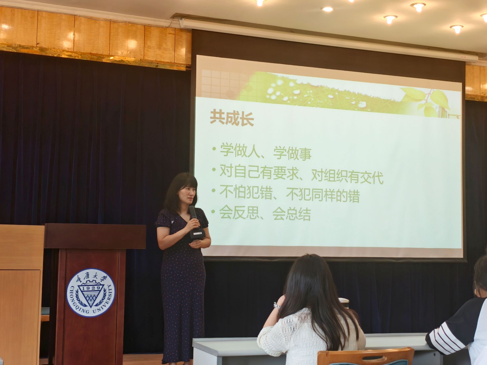 紧接着,徐柳老师表达了对全体学生干部“共成长”的期望。她强调,务必坚持“先做人,再做事”的原则,不断提升个人品格修养,做到对自身有要求、对组织有担当。学生干部之间要互相帮扶,不怕犯错,做到知错即改。同时,要勤于反思,善于总结,确保工作高效推进。