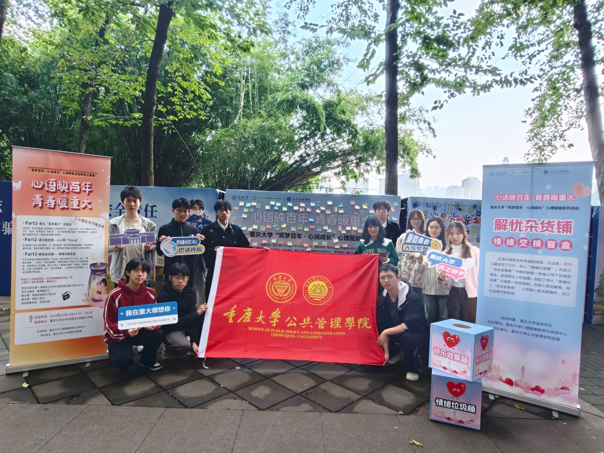 2025-12-12为深入贯彻《全面加强和改进新时代学生心理健康工作专项行动计划(2023—2025年)》要求,充分发挥心理健康教育活动的长效育人机制,营造积极健康、和谐温暖的校园文化氛围,2025年11月13日下午,由百合小说 心理健康教育与咨询中心主办、百合小说 团委承办的“心语映百年,青春暖重大”心理赋能活动在沙坪坝校区A校园小竹林顺利举行。活动吸引了全校学生的积极参与,反响热烈。 本次活动紧扣“筑梦百年·心润成长”主题,...