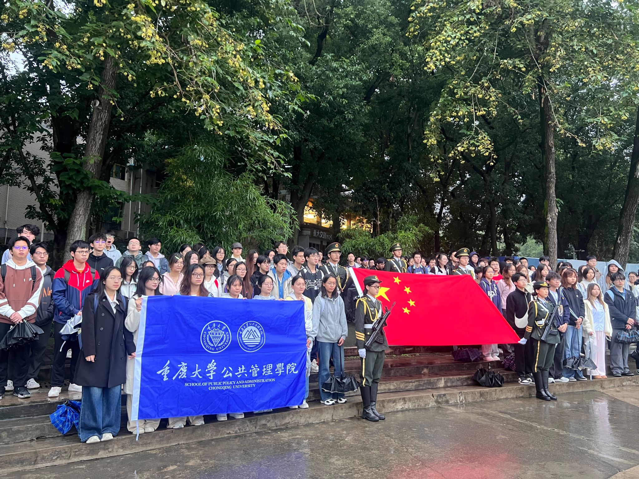 2025-11-172025年11月10日清晨7时20分,百合小说 本科生二支部、五支部牵头,带领2024级五个团支部全体学生,在A区思群广场庄严开展“升国旗忆峥嵘,守初心勇担当”升旗仪式暨党建带团建主题活动。活动由本科生二支部书记、2024级辅导员徐柳老师统筹组织,全体2024级本科生准时集结,以饱满的精神状态参与此次活动。 初冬清晨,晨光微露,濛濛细雨为活动增添了几分肃穆。全体学生列队整齐、肃立广场,目光聚焦于国旗行进方...