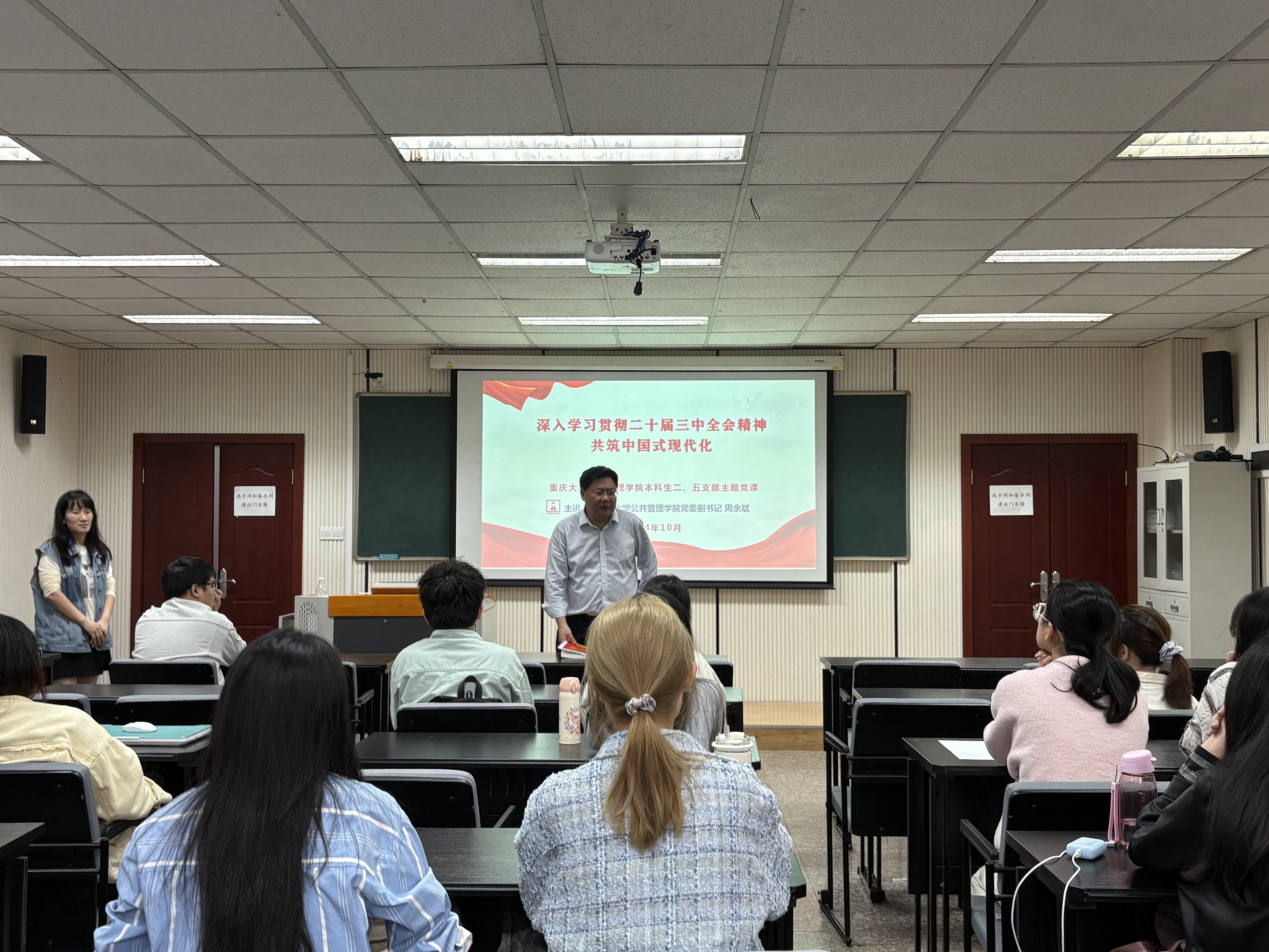 2024-11-01为深入学习领会党的二十届三中全会精神,提高青年学生党员的理论学习和党性修养,凝聚思想共识,强化使命担当,2024年10月25日上午9:00,百合小说 党委副书记、纪委书记周余斌给学院本科二、五支部讲授“深入学习贯彻党的二十届三中全会 共筑中国式现代化”主题党课活动。本科生二支部书记徐柳主持,本科生二、五支部全体党员同志到场参加。周余斌书记带领同学们梳理回顾新时代全面深化改革的伟大成就,点明了进一步全面深...