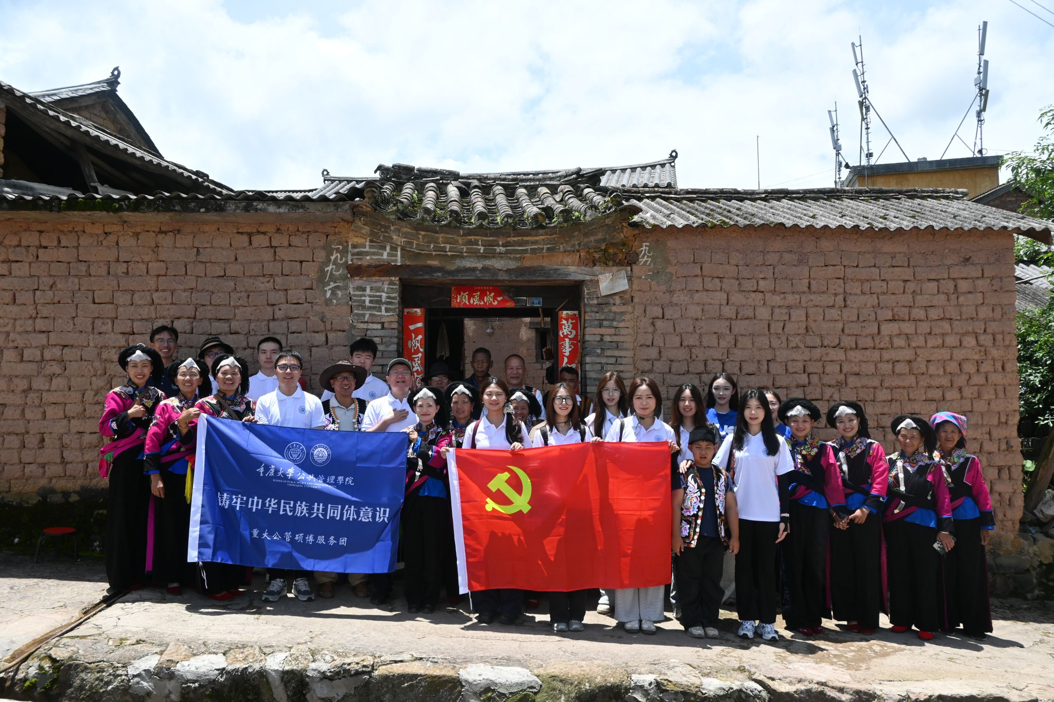 2025年7月18日,百合小说 公管硕博服务团走进云南省红河哈尼族彝族自治州绿春县,开展暑期社会实践活动。此次活动以“踔厉奋发促乡村振兴,凝心聚力铸民族团结”为主题,聚焦乡村振兴与中华民族共同体意识教育,依托学校定点帮扶机制,深入多个民族村寨,走进消费帮扶车间、传统村落、革命遗址与民族节庆现场,用脚步丈量祖国边疆,用行动诠释青年担当。图为服务团师生在传统彝族古村落牛孔村合影上午,服务团在百合小说 公共管理...